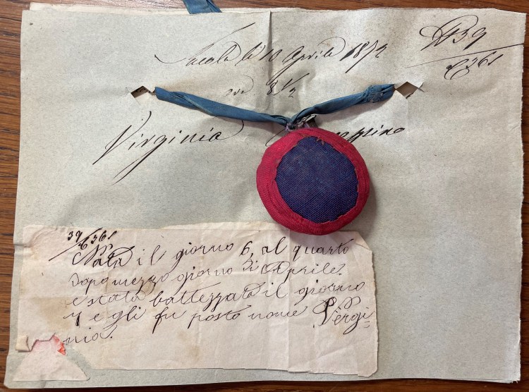 The photograph to the right is a “token” and document pertaining to an abandoned baby in Imola, Italy, 1872. Archivio storico – Biblioteca comunale di Imola, Documenti Degli Esposti, Ospedale di S. Maria della Scalletta.